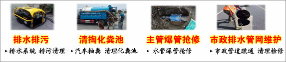 服务地区:四川成都地区市政排污排水管网清理疏通、河道疏浚、涵洞清淤、污水管堵塞渗漏检测修复,企事业单位的污水管清堵、雨水管清洗疏掏、窨井阴井清理、清掏化粪池、下水道疏通、抽运清理隔油池、化油池沉淀池清洗、环卫汽车抽粪吸污泥、高压水车冲洗疏通油污泥沙管道、清清洗污水处理池、生化池、雨污口排堵、检查井清理、排水沟渠清通、疏通清掏市政排污排水管道、污水管打堵头。让客户的满意是本公司长远的目标。